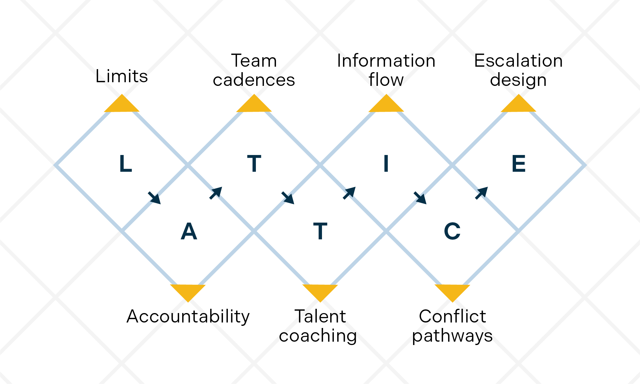 Flattening works when hierarchy is replaced with a usable network, clear enough to coordinate, light enough to move. One way to build that is with a LATTICE: seven coordination elements that substitute mechanisms for layers.