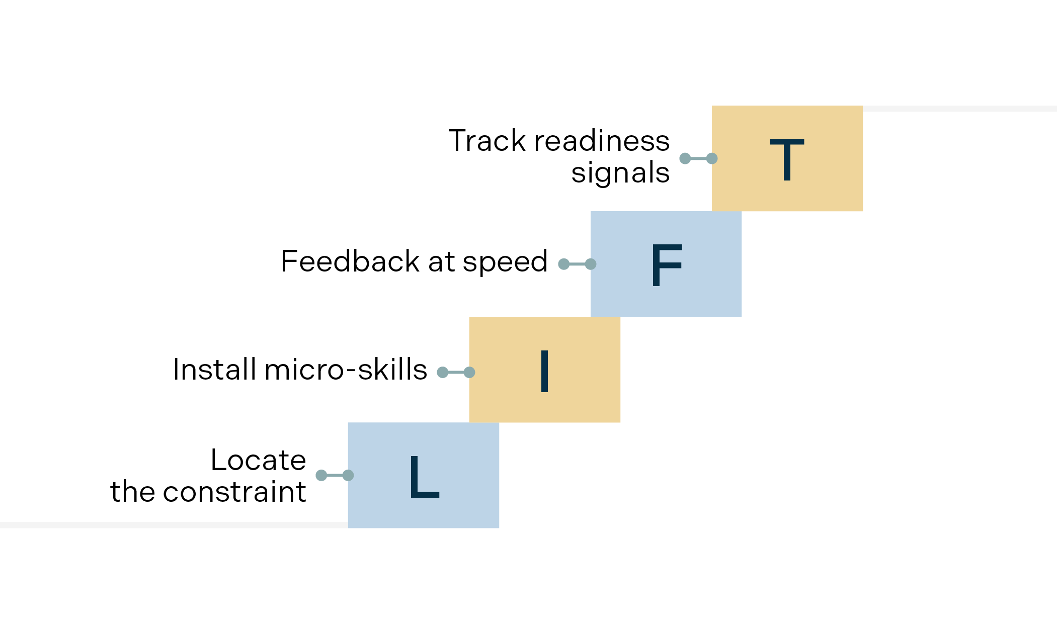 • Build skills in the flow of delivery. Use the LIFT loop to build real muscle while shipping: Locate constraints, Install micro-skills, Feedback rapidly, Track readiness.