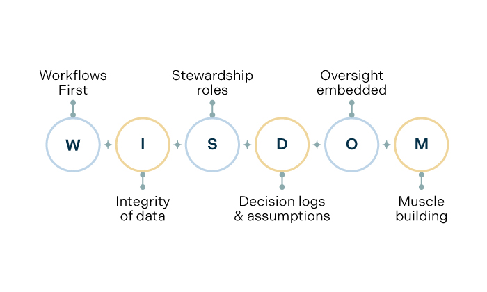 To scale AI without shrinking human accountability, use WISDOM—a practical operating model for “wisdom at scale.”